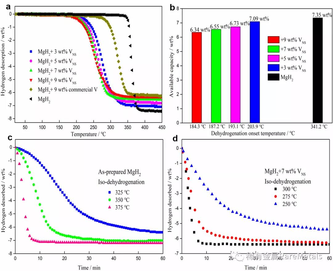 2.釩納米片可顯著提高M(jìn)gH2的吸放氫速率;