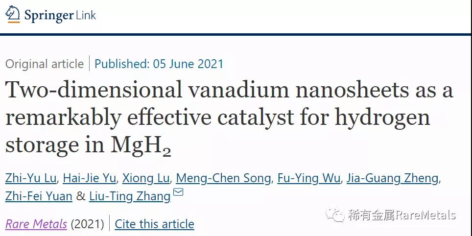 Lu, ZY., Yu, HJ., Lu, X. et al. Two-dimensional vanadium nanosheets as a remarkably effective catalyst for hydrogen storage in MgH2. Rare Met. (2021). https://doi.org/10.1007/s12598-021-01764-7