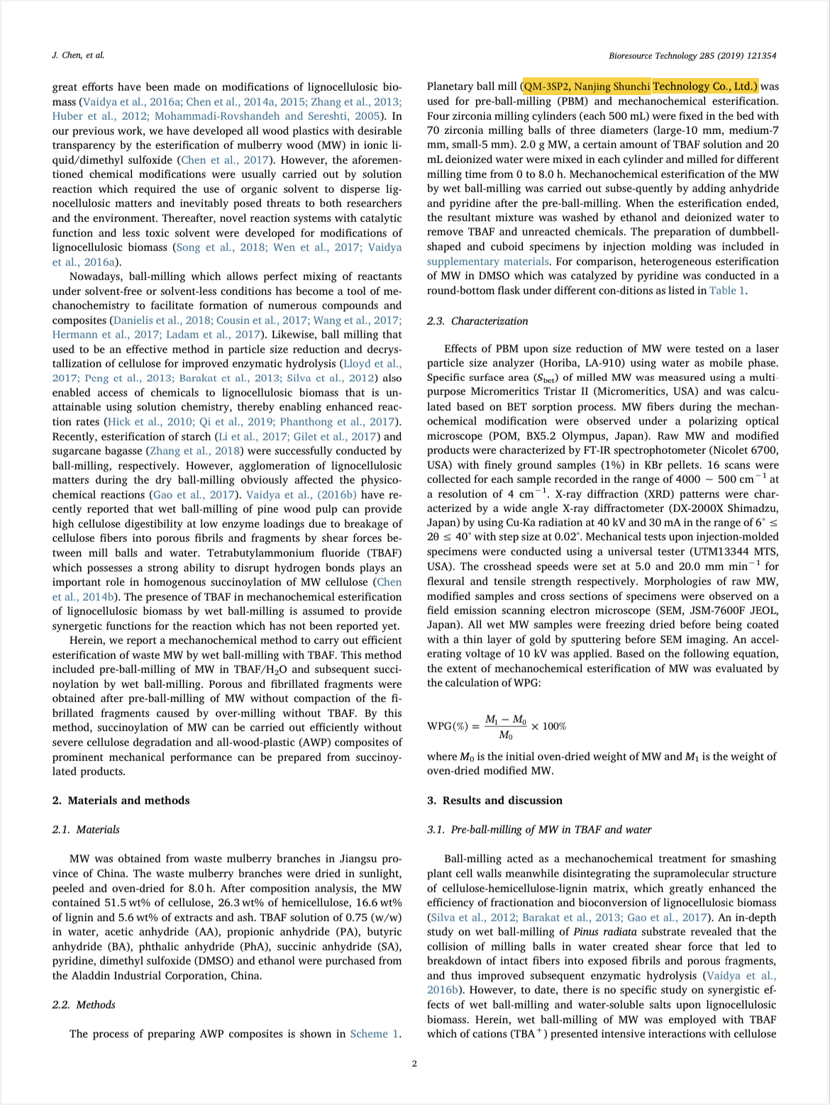 廢桑木和四丁基氟化銨通過(guò)球磨機(jī)濕磨的機(jī)械化學(xué)酯化反應(yīng)