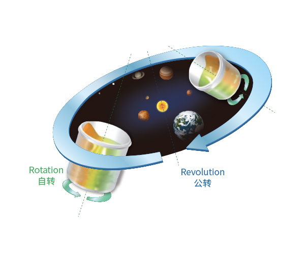 The material rotates and rotates within the container, achieving stirring, dispersion, and defoaming of high viscosity materials within minutes